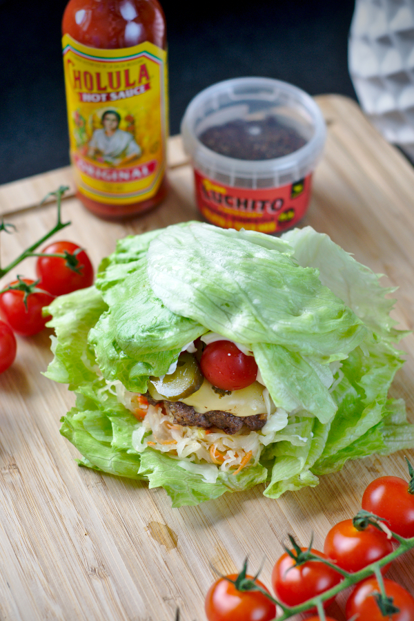 When scrolling Instagram this caught my eye – burger packed in iceberg lettuce instead of bun. Not thinking a lot I’ve made some burgers, added some sauerkraut to make it even more healthy and there you go!