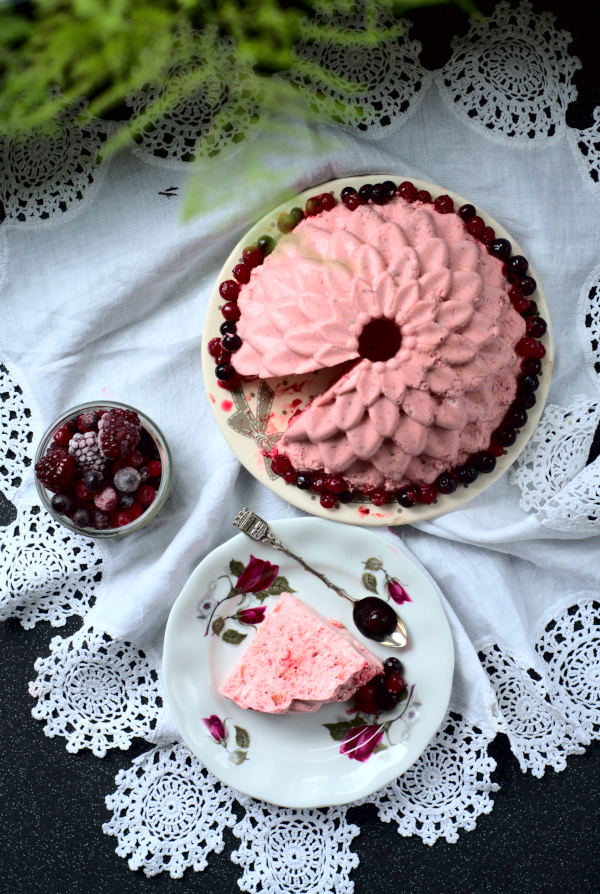 Another jelly whip variation. This time I used rhubarb and strawberries I have left in my freezer from making coconut flour cake, which I didn’t enjoy as much as I though I will. But in case of jelly whip, the taste of rhubarb is more visible. It adds specific sourness to that sweetness from strawberries and jelly. And I really like it.