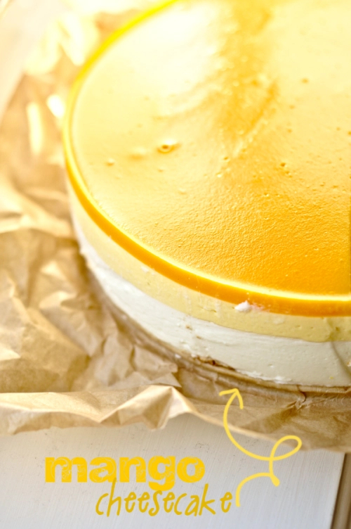 Today I wanted to show you something very simple, pretty looking and most important – tasty. Of course, if you like mangoes. Coconut milk, which is very noticeable in a white layer, adds tropical vibe to the cheesecake. If you don’t like coconut, you can skip it. If you have access to canned mango pulp, it will make your live even easier. If not, I recommend buying some ripe mangoes and treat them with blender.