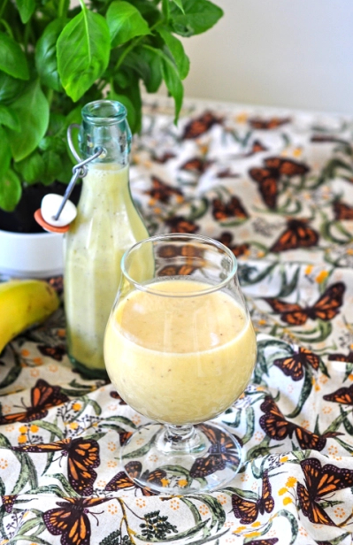 While preparing this post I stumble up on a very interesting article, but before that let me introduce you this delicious tropical flavoured smoothie. If you live in hot climate or your summer time is extremely warm, this kind of drinks will be a good option for you. There’s a reason why tropical fruits grow in tropics. When it’s hot you’re appetite goes down, you sweat a lot, so you need more water. Fresh summer fruits and vegetables, generally raw, have a cooling nature. So if you live in a climate where all year round is hot eating more of raw veggies and fruits will be more natural and healthy for you. Whilst if you live in a climate with four seasons let’s say, Summer will be the best time to treat yourself with some tropical fruits. Diet based on only salads, cocktails or such popular smoothies, will not necessarily work in the cold and snowy Autumn and Winter. Therefore, the Eskimo’s body needs different food than the inhabitant of hot Africa or Australia. A diet dominated by products from a different climate zone, will provide us with the wrong proportions of nutrients (and different nature) and in the long run might not be beneficial to our health. But that’s only my opinion. Although there must be a reason why world was build like that.