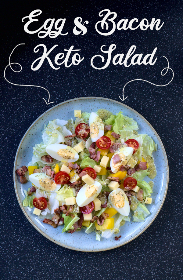 Who said that keto must be boring? Who would resist to this colorful, delicious salad with bacon and cheese? My partner bored with scrambled eggs or omelette for breakfast asked me for something different. He’s a team: “salad for breakfast won’t make me feel full”. You know this kind of people? I’ve managed to convince him only because of smoked bacon 🙂 The outcome? He asked me couple more times to make this salad for him 🙂