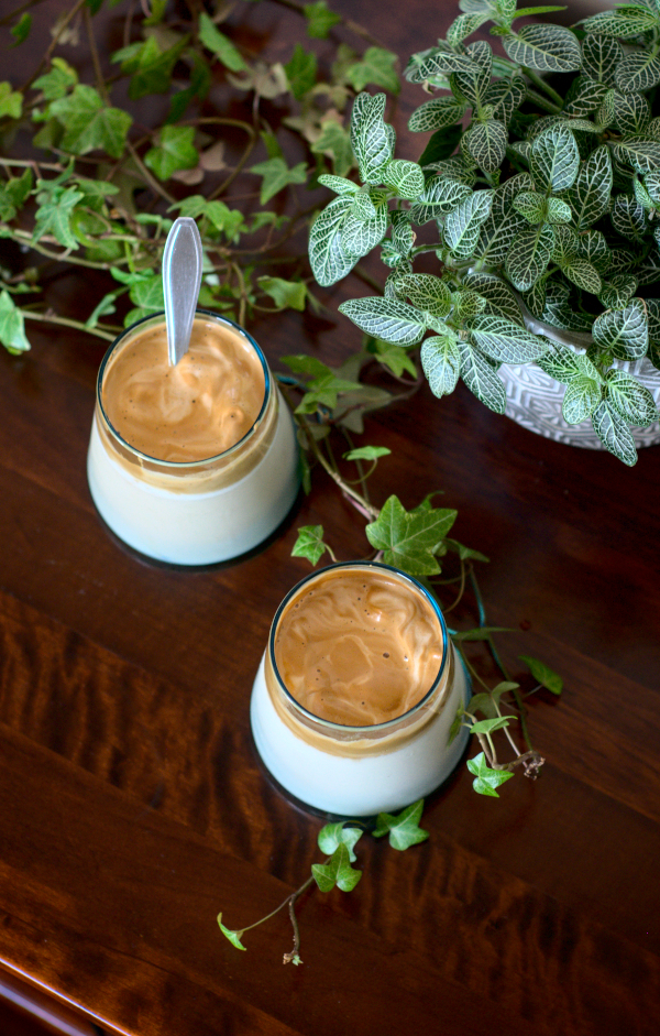 Original recipe requires whipping the coffee until it’s very fluffy and light like a cloud. But I’ve noticed that if you make it this way it’s much harder to mix it with the milk when you put it to the cup. It looks more impressive and pretty though. That’s why I usually whip my coffee until it’s quite creamy and frothy but not too much. So it’s easier to mix it with milk. You can see on the photos, that my froth is not very impressive. Although I like like it this way much more.