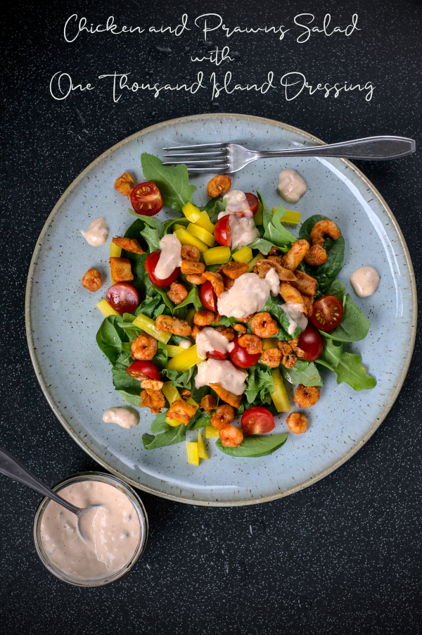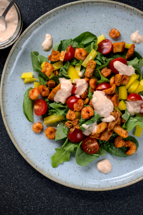 keto salad with chicken, prawns & 1000 island dressing