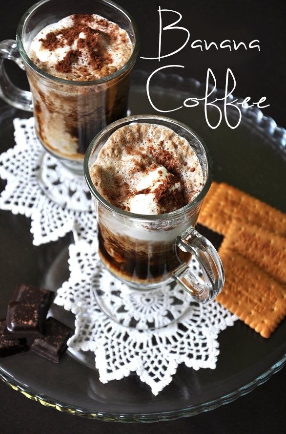 I do not like very cold iced coffee, so instead of ice cubes, I used slightly warm coffee and a scoop of vanilla ice cream – I like this combination very much, because the individual layers do not mix too much, and you can have a sip of warm strong coffee with bananas or cold vanilla ice cream. Also if you don’t have condensed milk, you can use single or double cream instead.