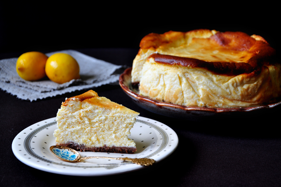 I admit that I was quite frivolously preparing this cheesecake, right now I would try more to follow the recipe, but surprisingly I have managed. Or I should say: cheesecake have managed 🙂 It has risen very quickly (then it deflate a bit like every cheesecake), cracked slightly and maybe it didn’t look very presentable, but the taste was heavenly. Light as a cloud, fluffy and moist. Not very sweet, with a lemon-vanilla aroma. Now then I look at the photo if it, I think think rustic look is very pretty.