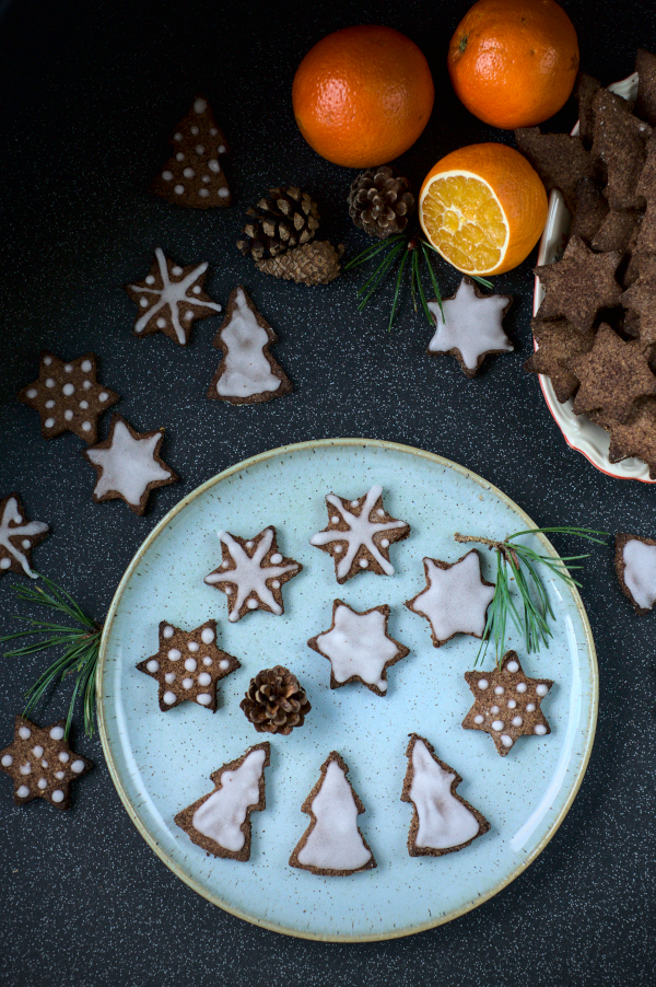 Just before starting shooting for this recipe, I decided to try and make icing. It went out quite well. I’m not a fan of icing – it’s too sweet for me, although I had a lot of fun decorating them. I know they are very imperfect, but I don’t mind. If you’ve never decorate biscuits or gingerbread cookies, give it a try. Preparing icing with powdered sugar or xylitol and little bit of water is extremely easy, 2-3 minutes and it’s ready. I used a teaspoon to decorate, but if you have special tools, you’ll be able to make more detailed decorations.