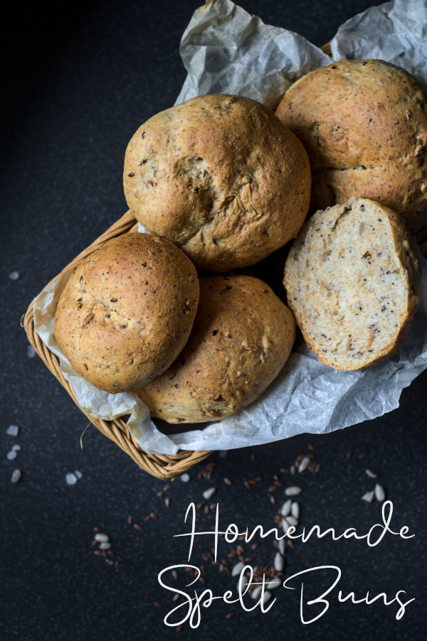 Because wholemeal spelt is quite dense and heavy I mixed it 1:1 with white strong bread flour. It makes buns and bread more fluffy and light. Depending of your liking you could use only spelt flour, or use 2 parts of spelt and 1 part of white flour.