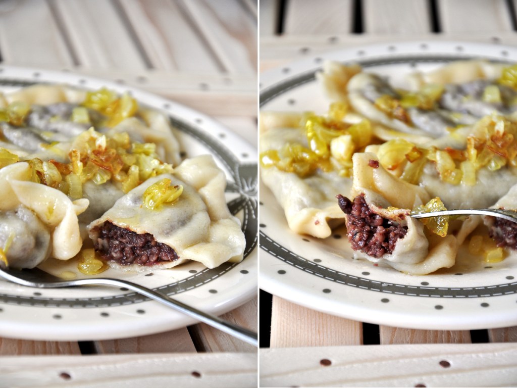 I decided to fill them with Scottish staple food: black pudding (which is very similar to Polish “kaszanka”), but you can use another Scottish delicacy – haggis. They both will be great and easy stuffing to make. But you can fill up your dumplings with all sorts of ingredients, depending of your liking. If you’re a fan of black pudding and dumplings – this combination will not disappoint you. If you want to make a bigger batch it’s time consuming, but for me the reward is worth time spent in the kitchen.
