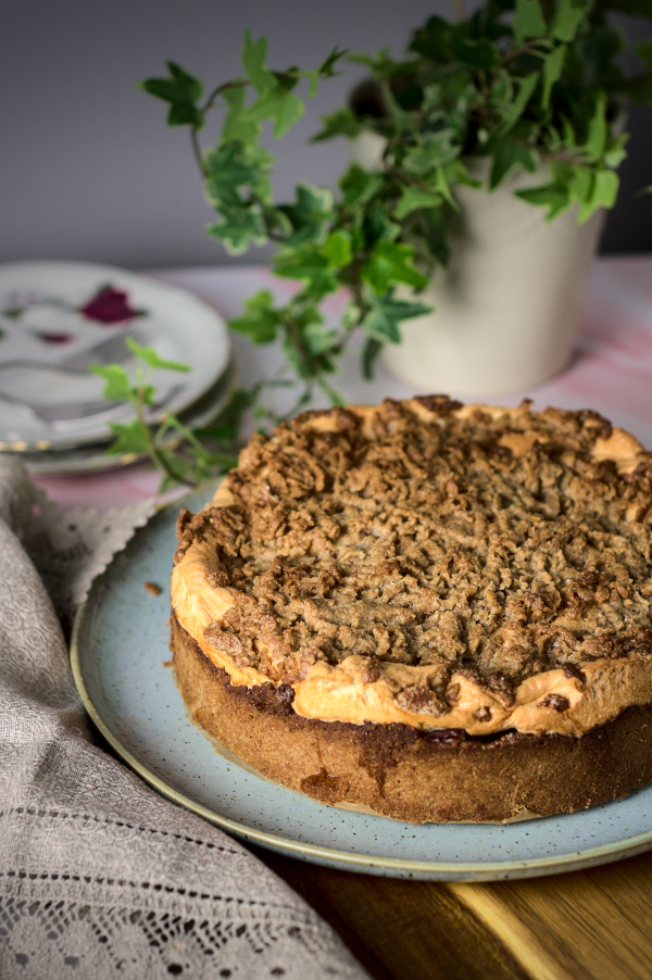 I used organic whole spelt flour to make this pie/cake. I try to use organic wholemeal flour or spelt flour in my kitchen to make food more valuable in nutrients. Spelt is an ancient grain, excellent wheat flour alternative – it’s easier to digest because it’s more water-soluble. In comparison to whet flour, spelt flour has also higher contents of copper, iron, zinc, magnesium and phosphorus. Apart from that it contains all group of B vitamins, folate and vitamin E that naturally occurs in grain (not fortified in laboratory, like in most of modern flours you can find in the supermarket).