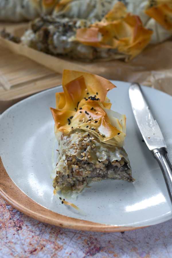 pork & wild mushrooms stuffed filo pie